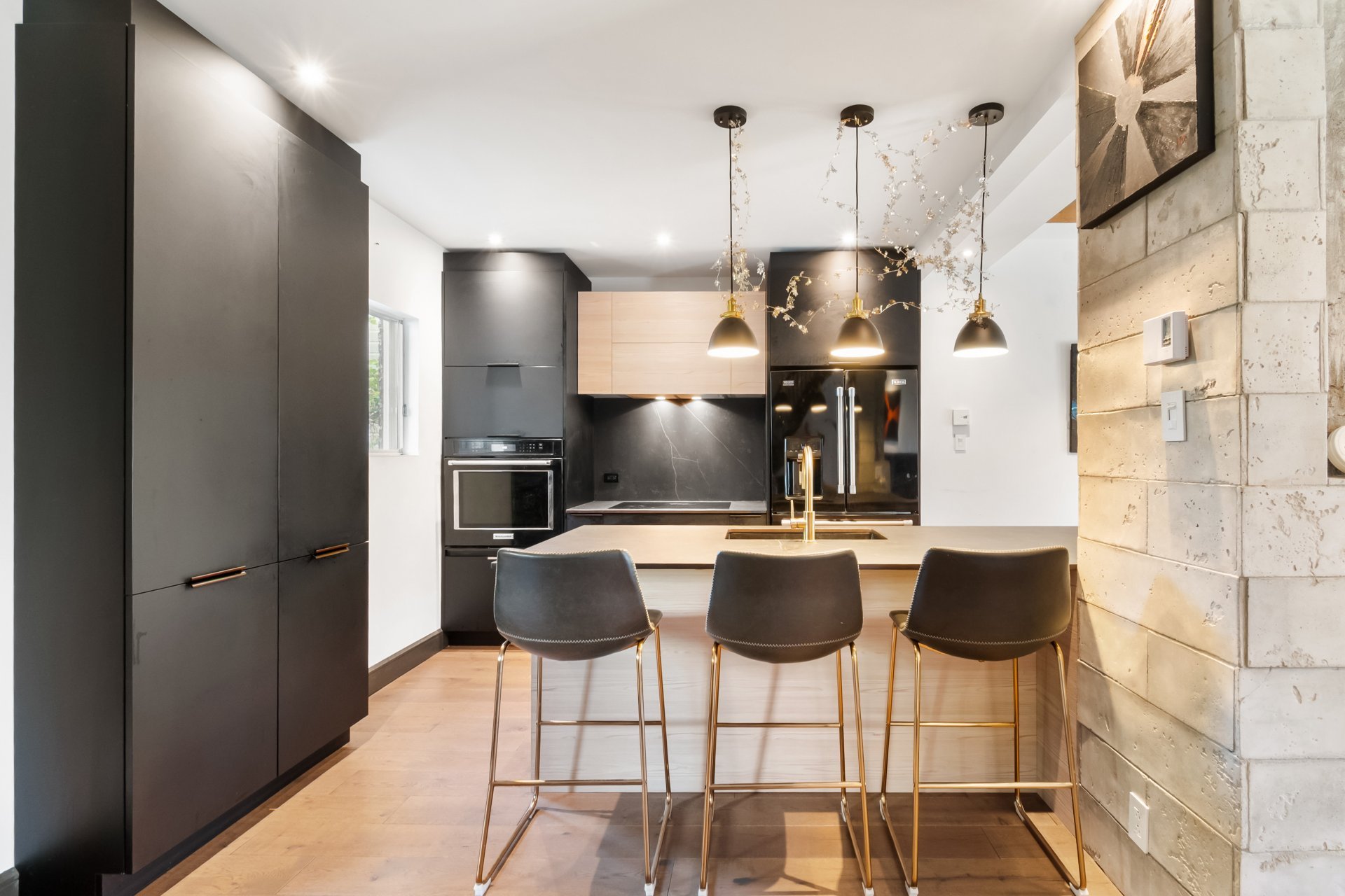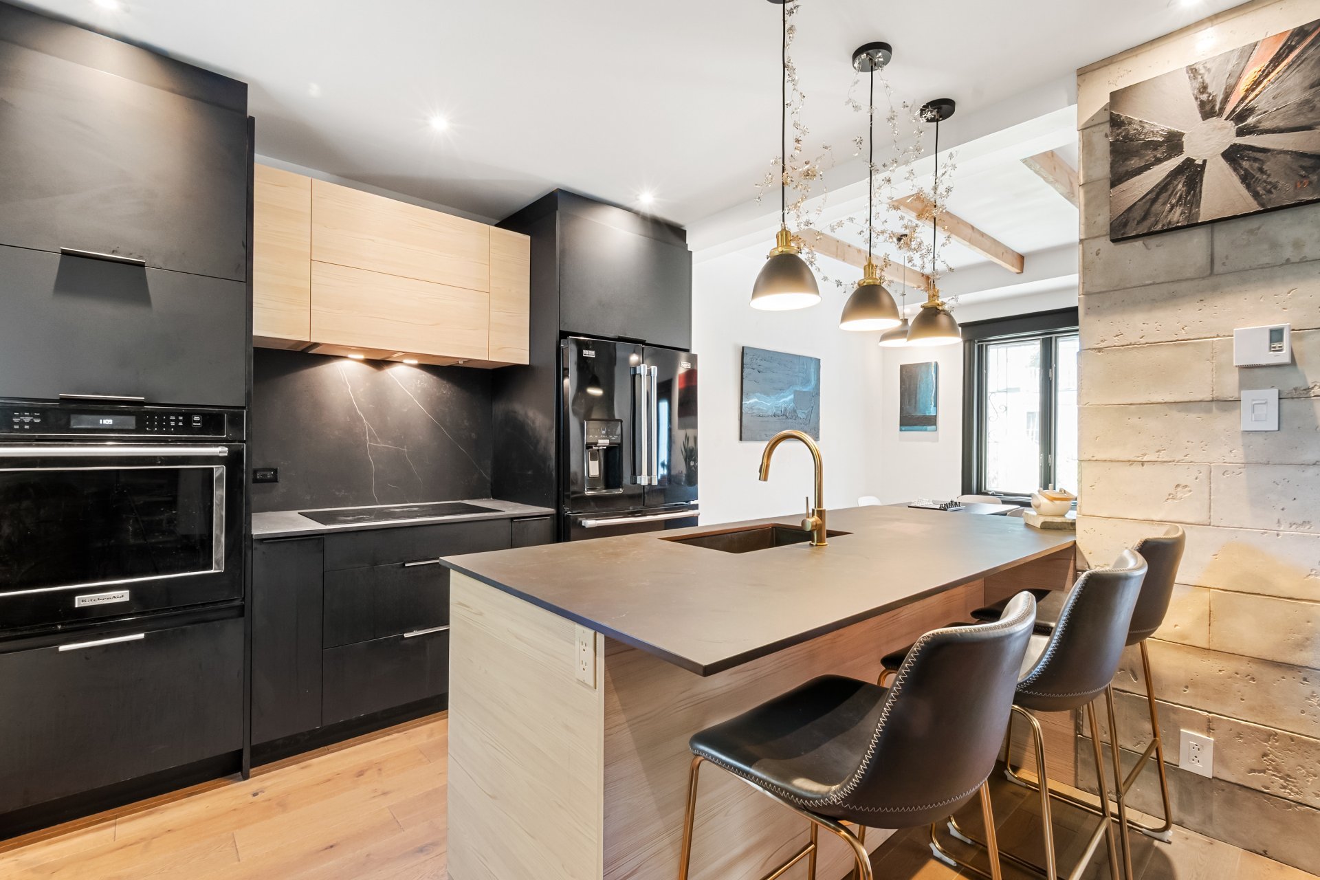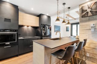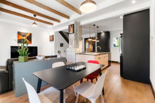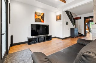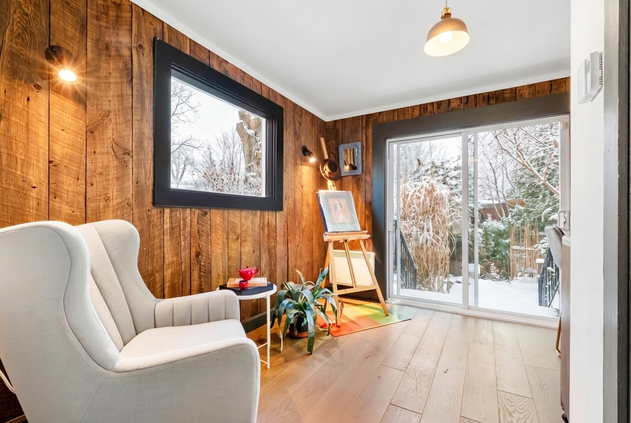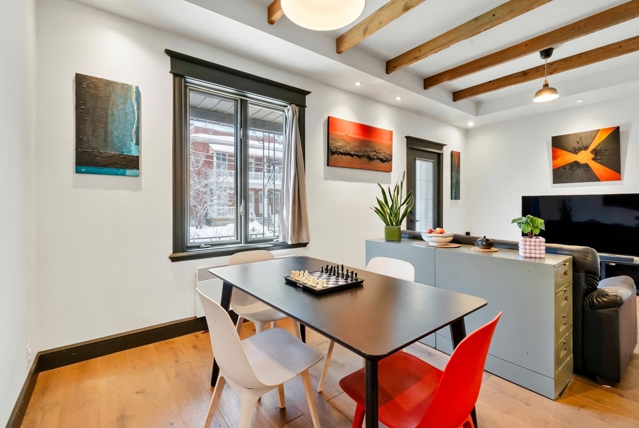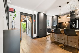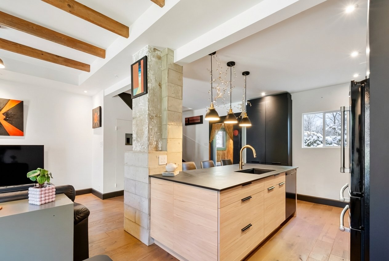 Charming property tastefully renovated with quality materials, combining character and modern comfort over 1,200 sq. ft. Featuring 3 spacious bedrooms, a bright office, two bathrooms, a powder room, and inviting living areas with hardwood floors and exposed beams. Modern kitchen with large island, ample storage, and rare black high-end appliances. Bathroom with clawfoot tub. Private backyard with lush exotic landscaping, 4 wooden terraces and mature vegetation creating a unique zen ambiance, all within walking distance to shops and services of Old Longueuil.