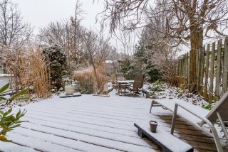 shielding the view of neighbors. Four wooden terraces