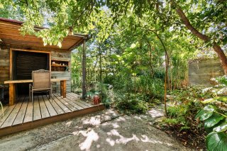 The outdoor space is a true haven. The lush garden, adorned