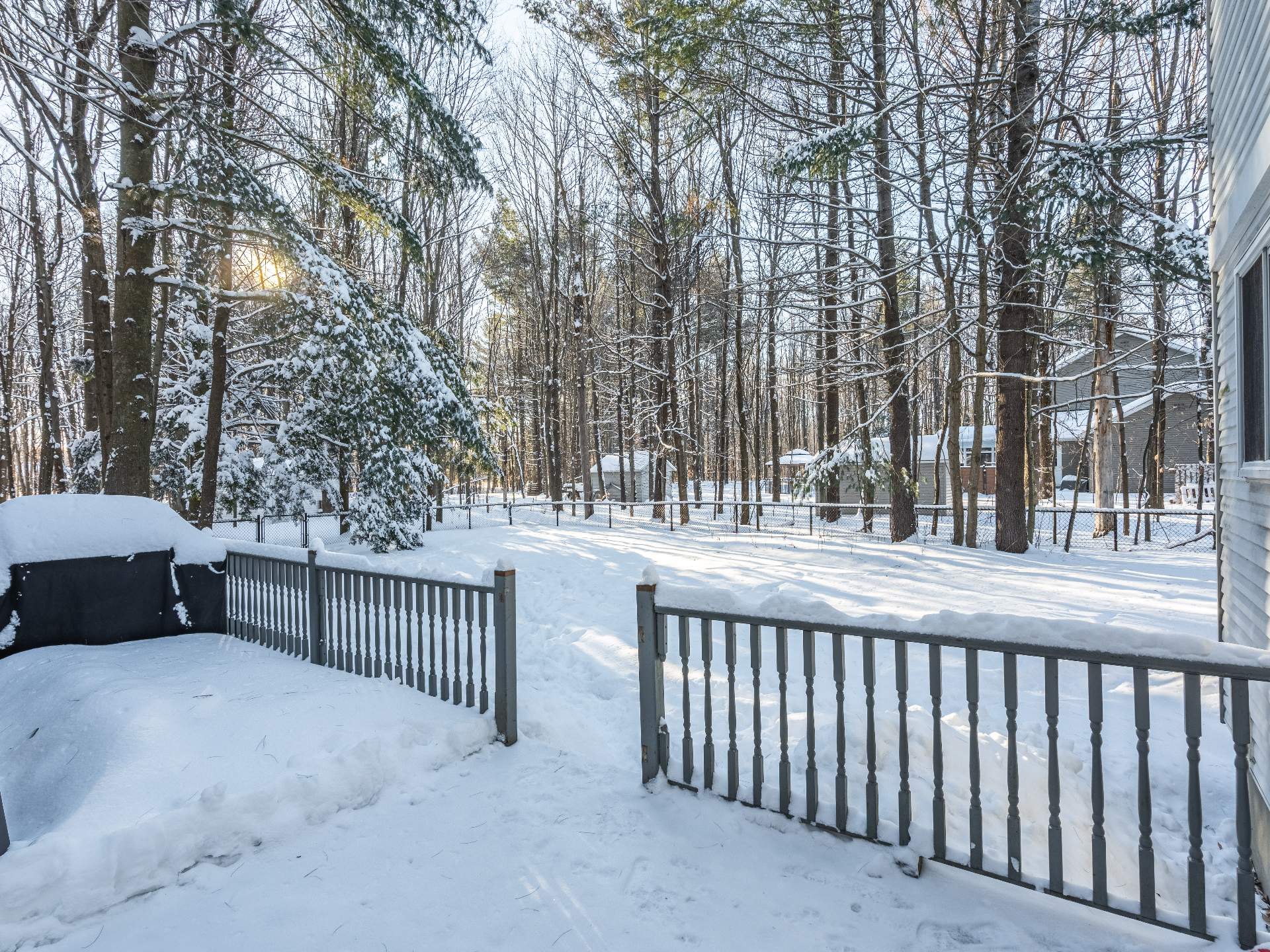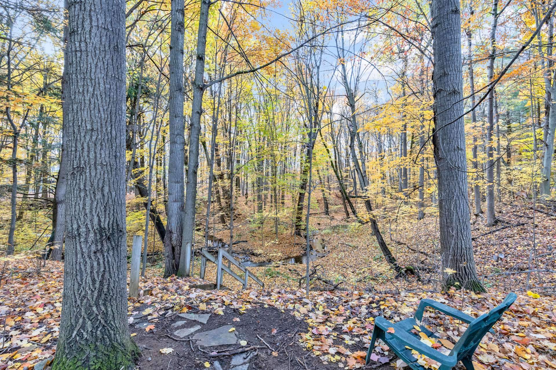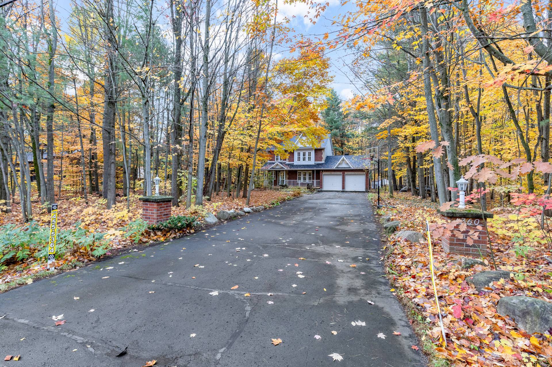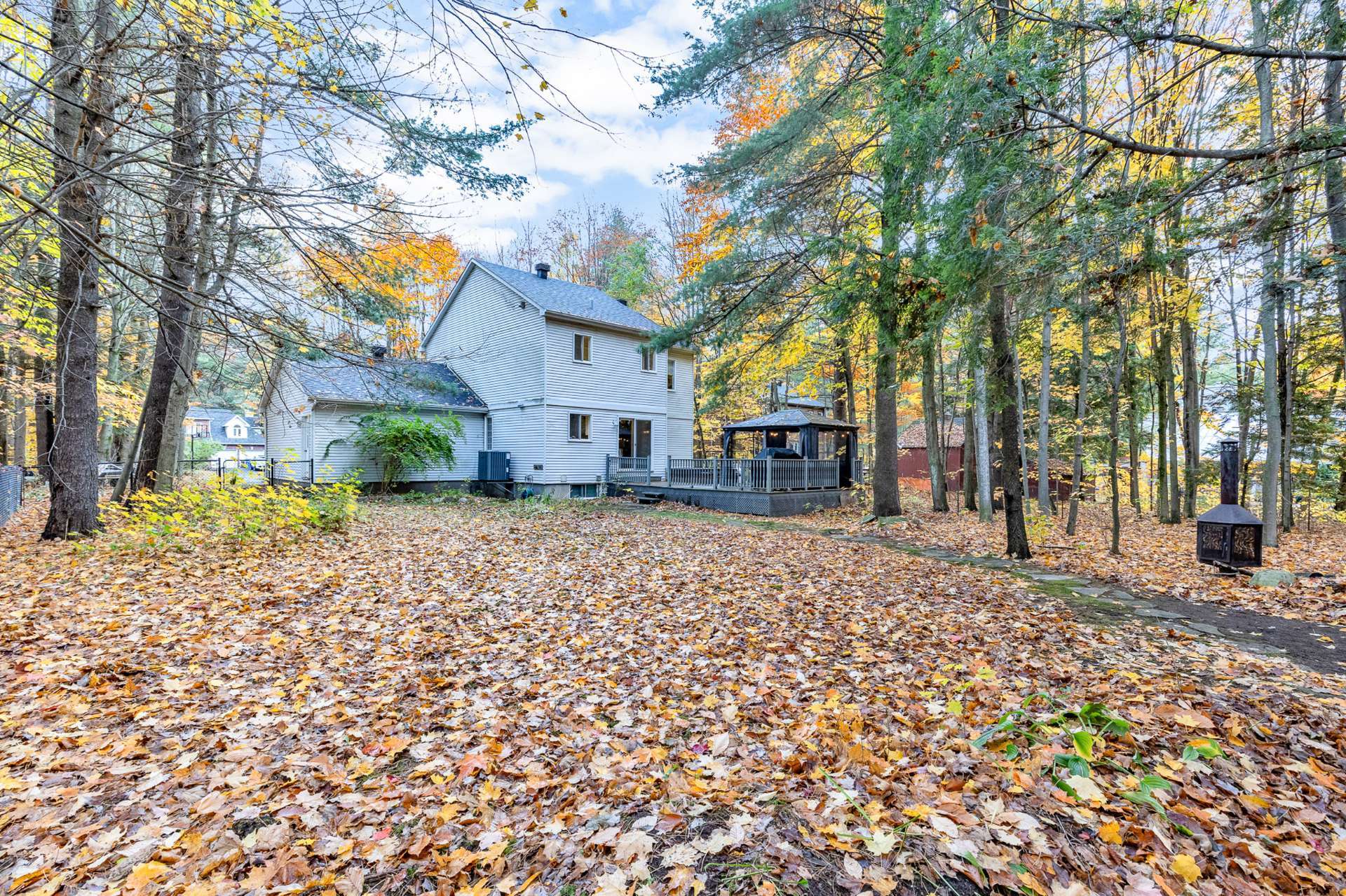 a private 36,946 sq.ft. wooded lot.