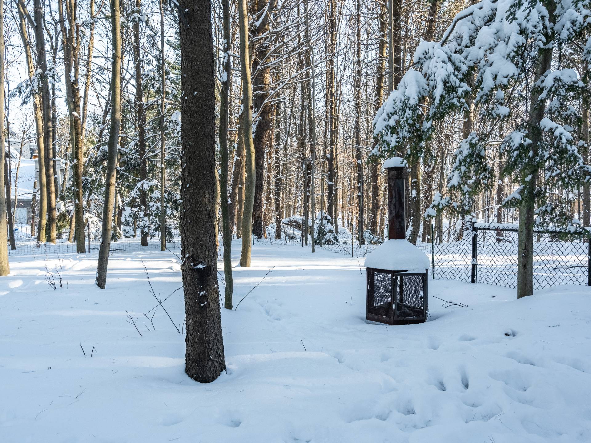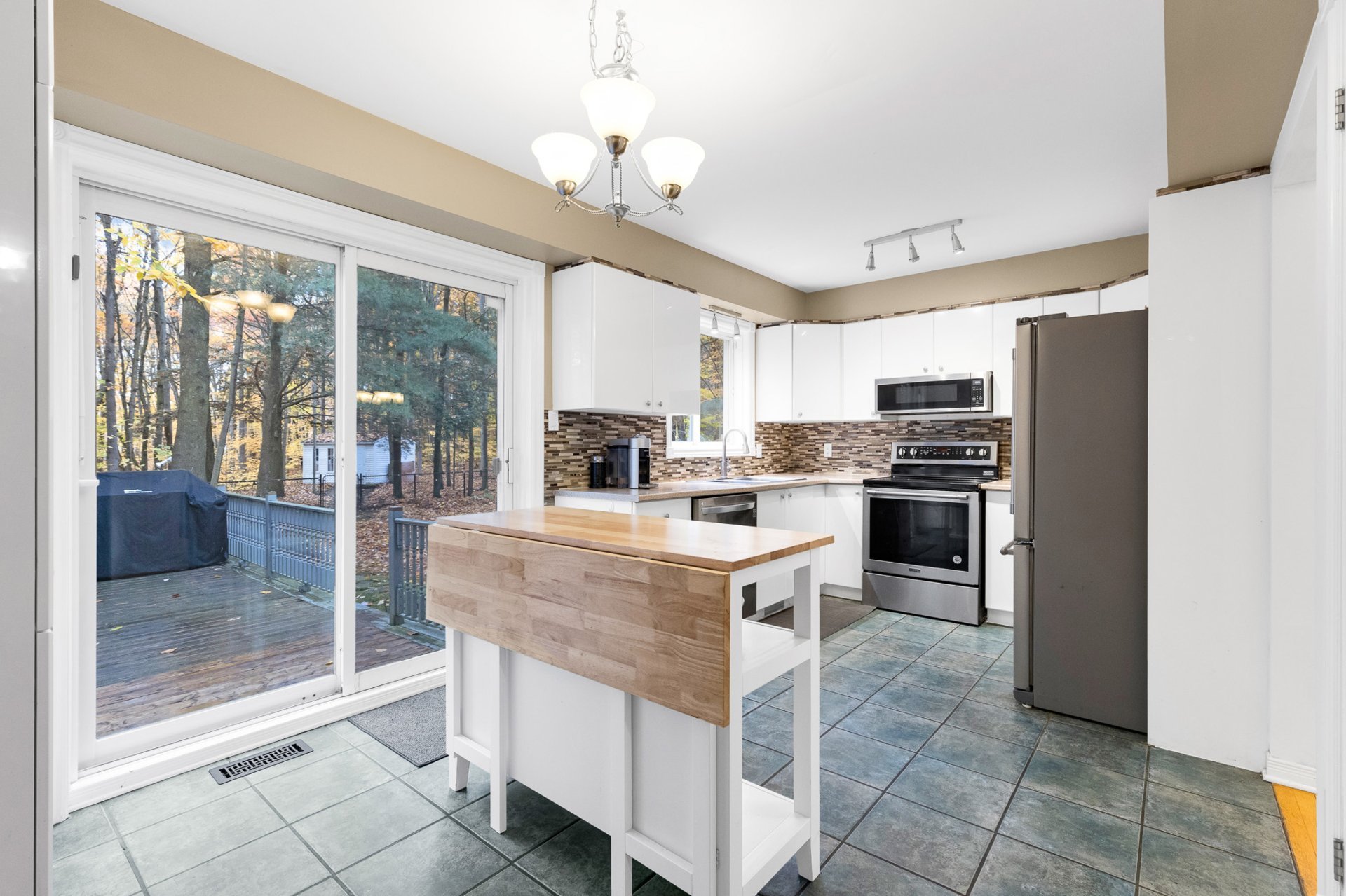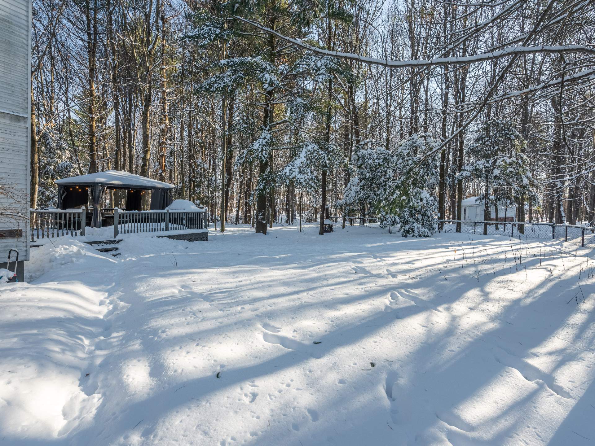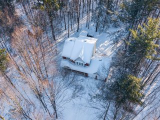 a private 36,946 sq.ft. wooded lot.