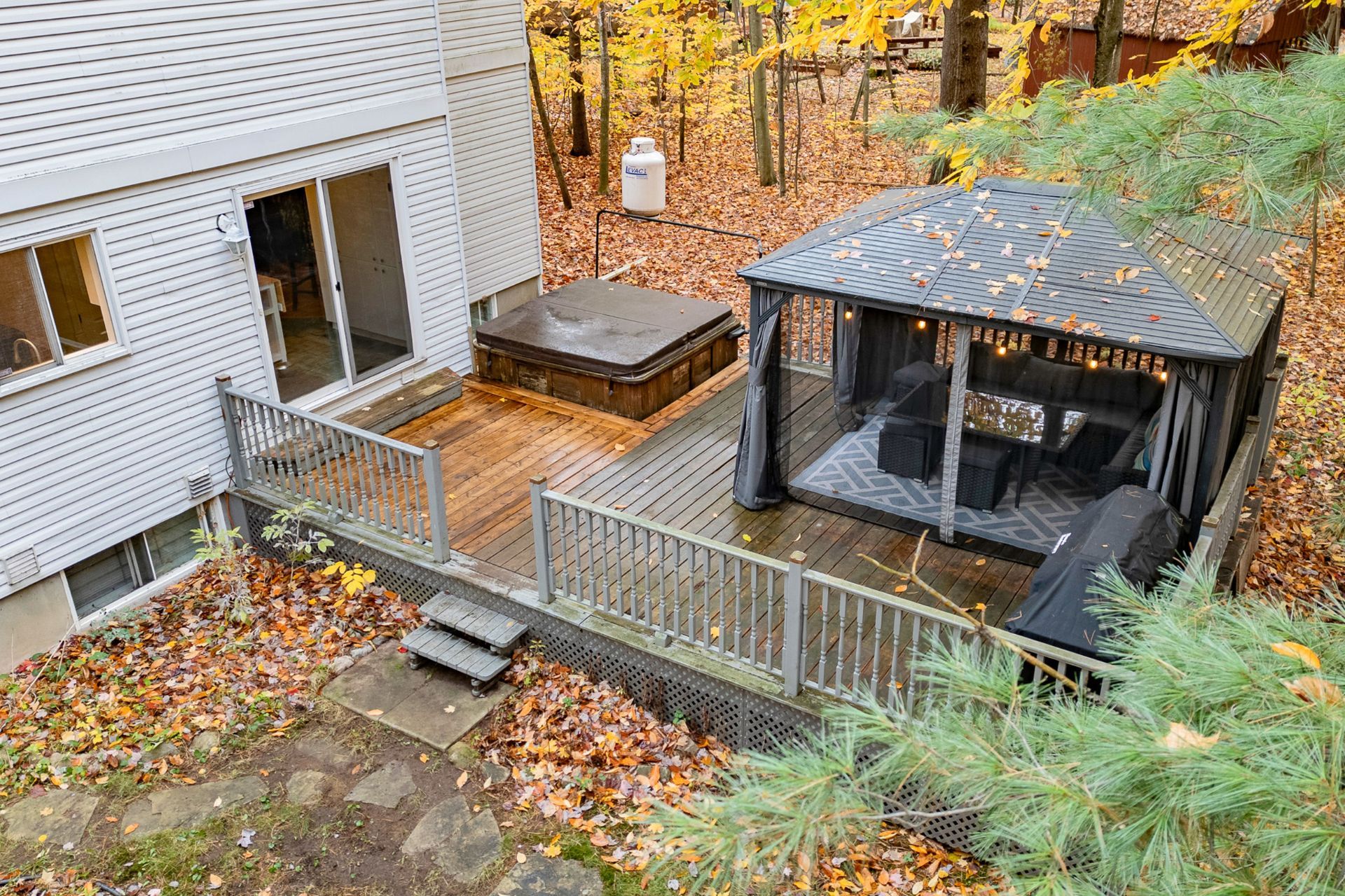 Inclusions : Stove, refrigerator, microwave hut, dishwasher, light fixtures, blinds, washer and dryer, central vacuum, spa, and gazebo.