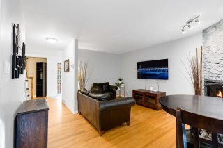with a cozy fireplace, an open and functional design, and a