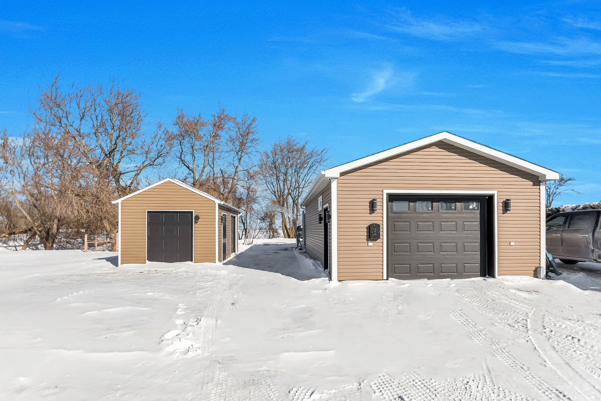 garage double attaché, grand garage détaché avec remise,