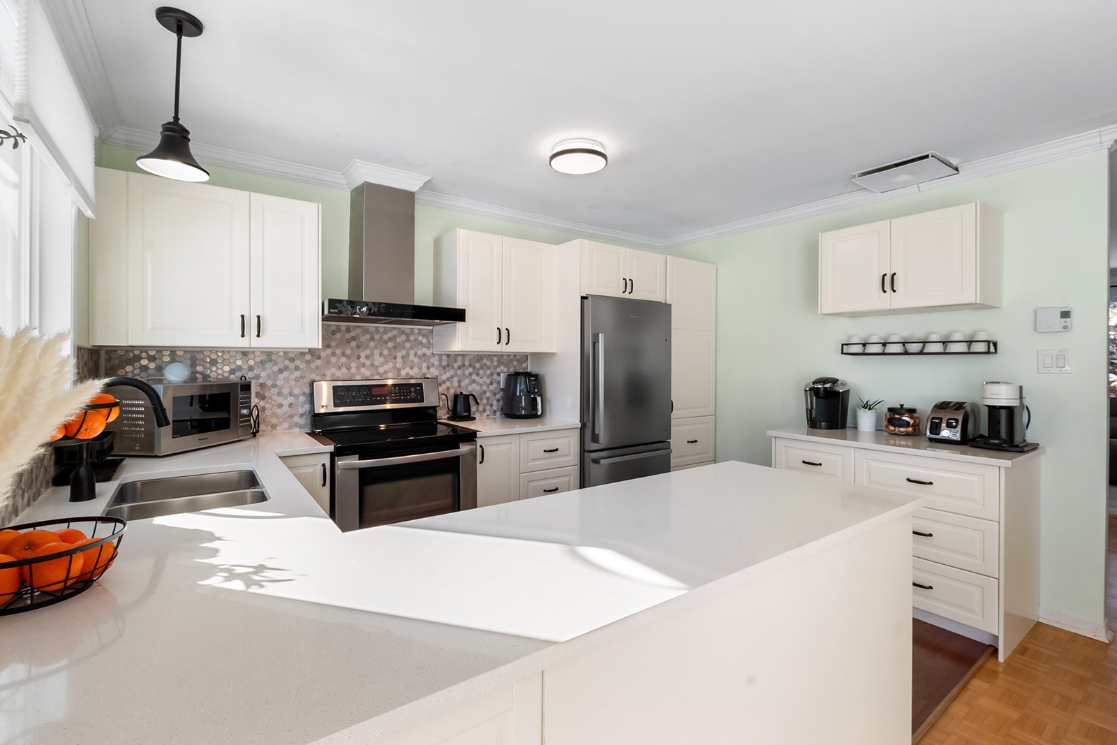 La cuisine fonctionnelle, dotée de beaucoup de rangement,